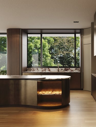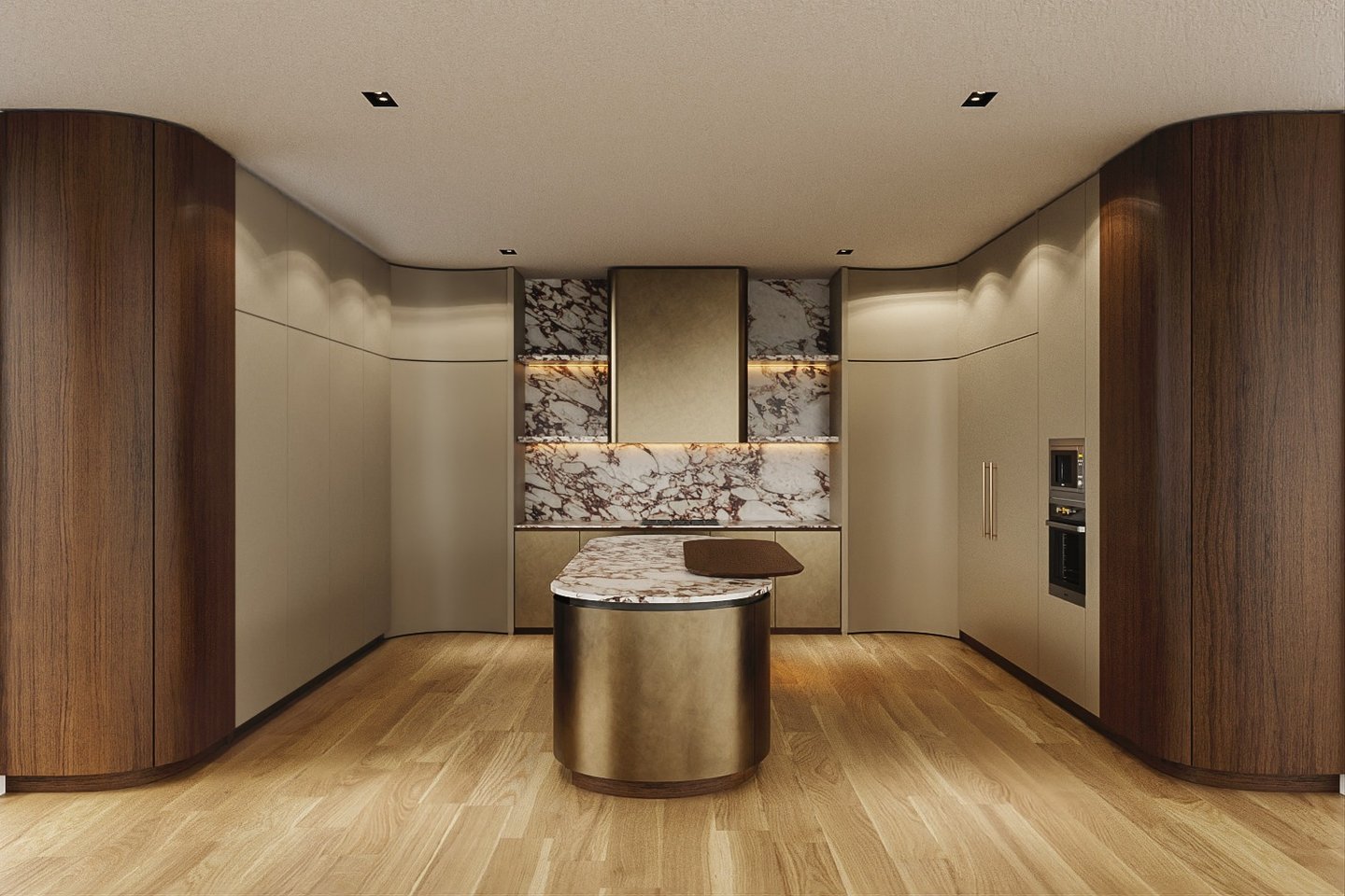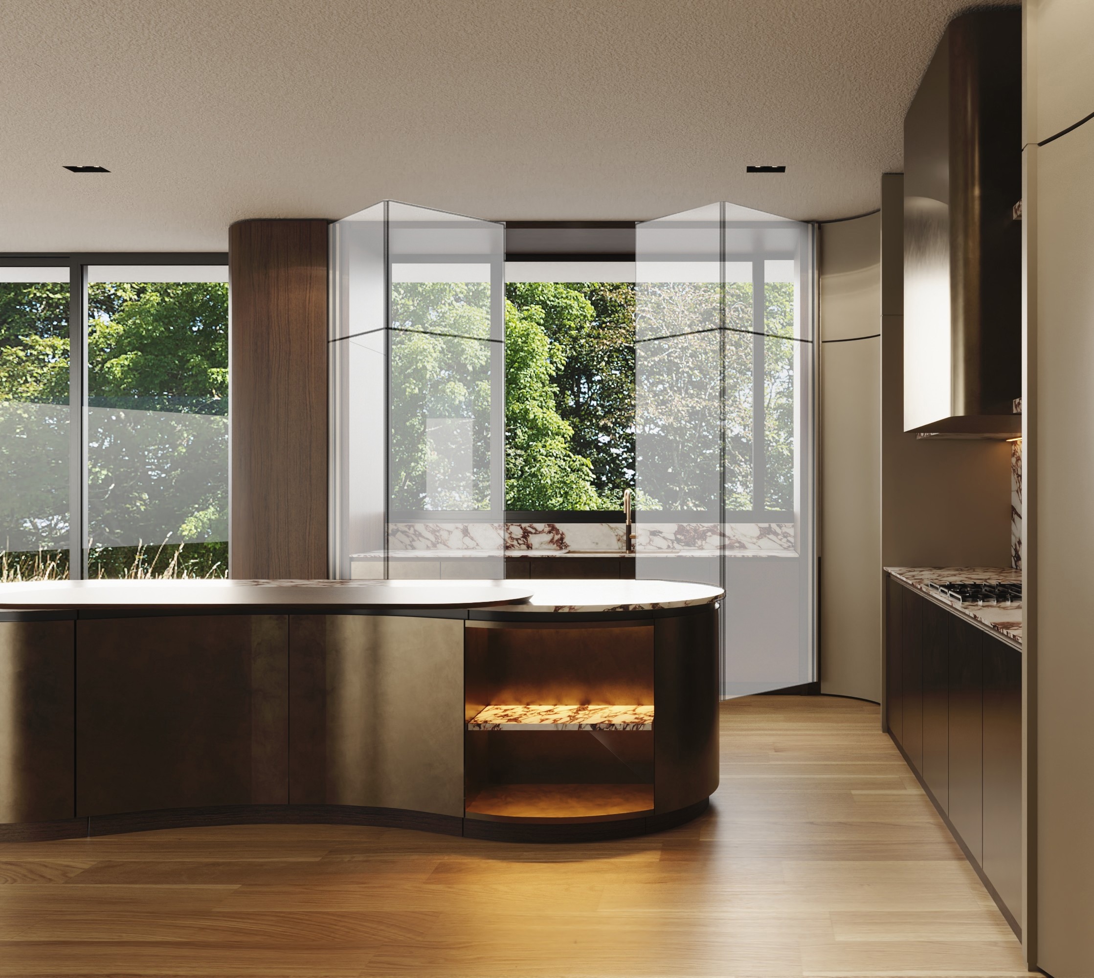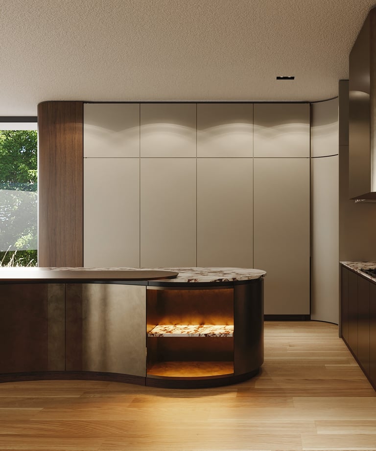 Curved Concealed Doors to Chef’s Kitchen