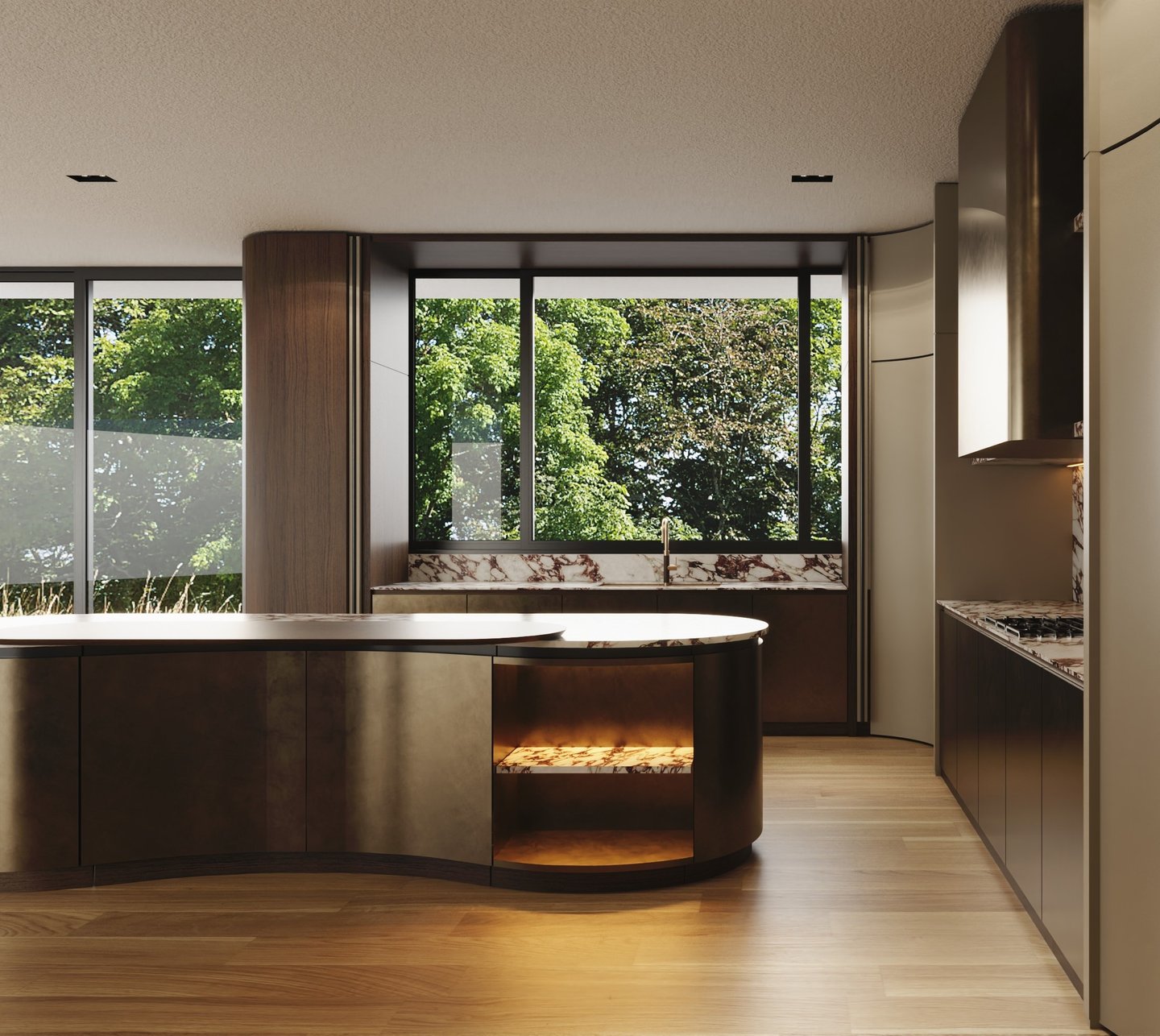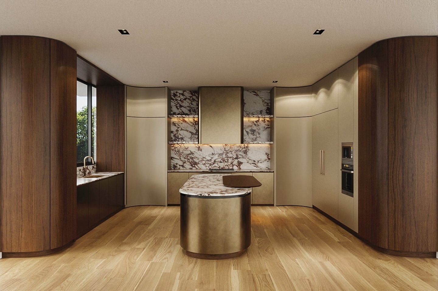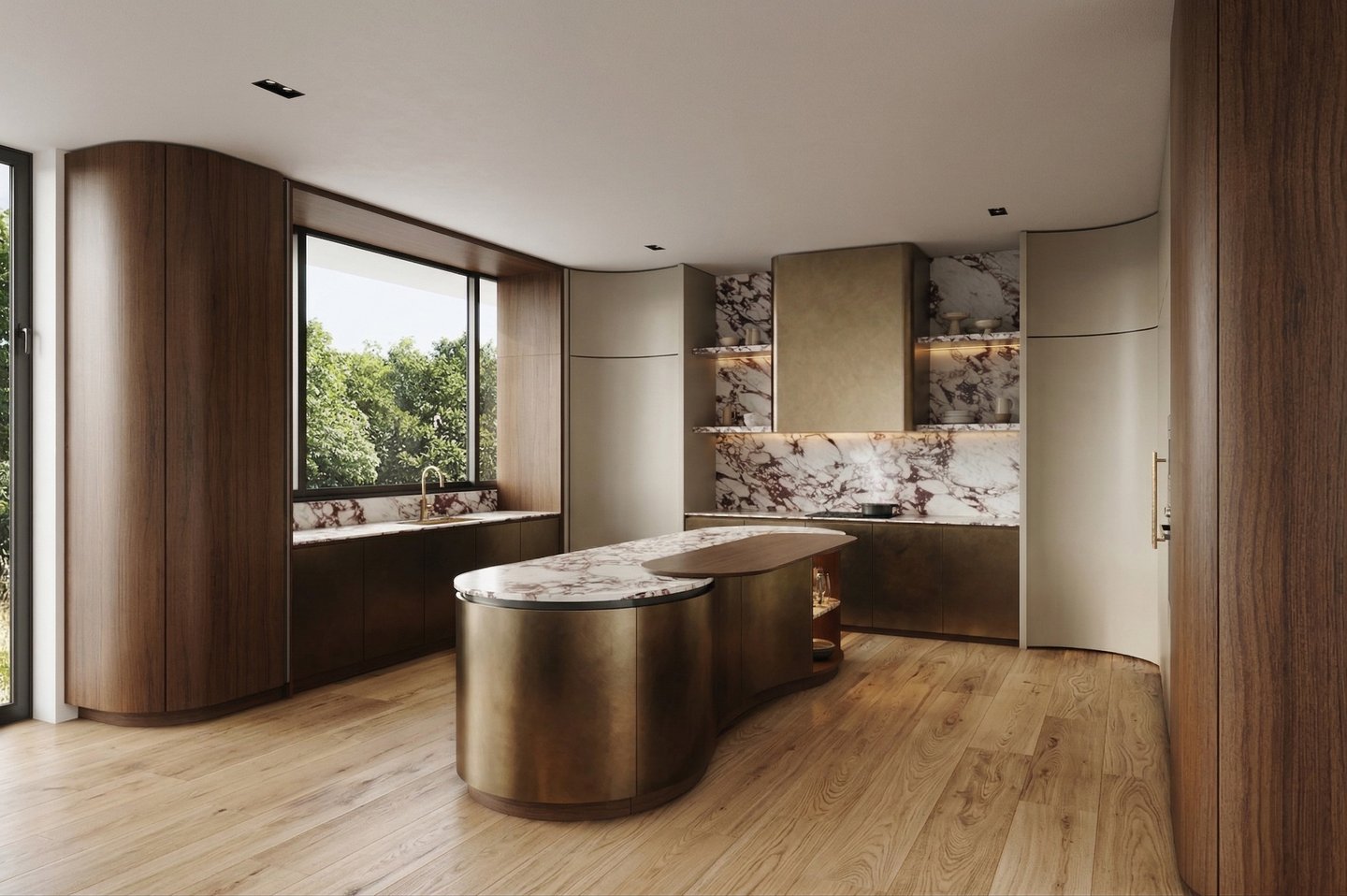 Curved Concealed Doors to Chef’s Kitchen