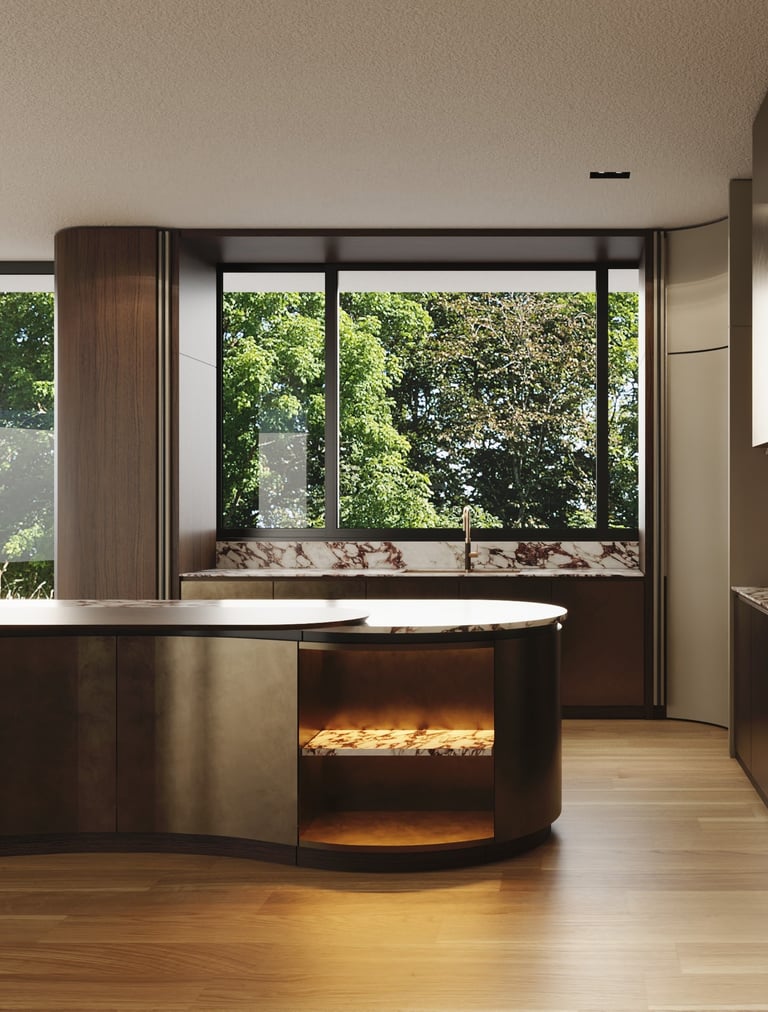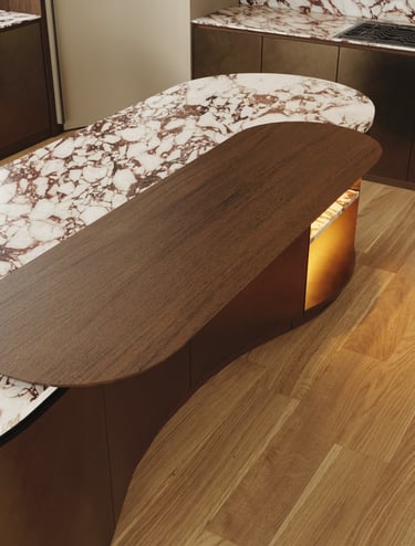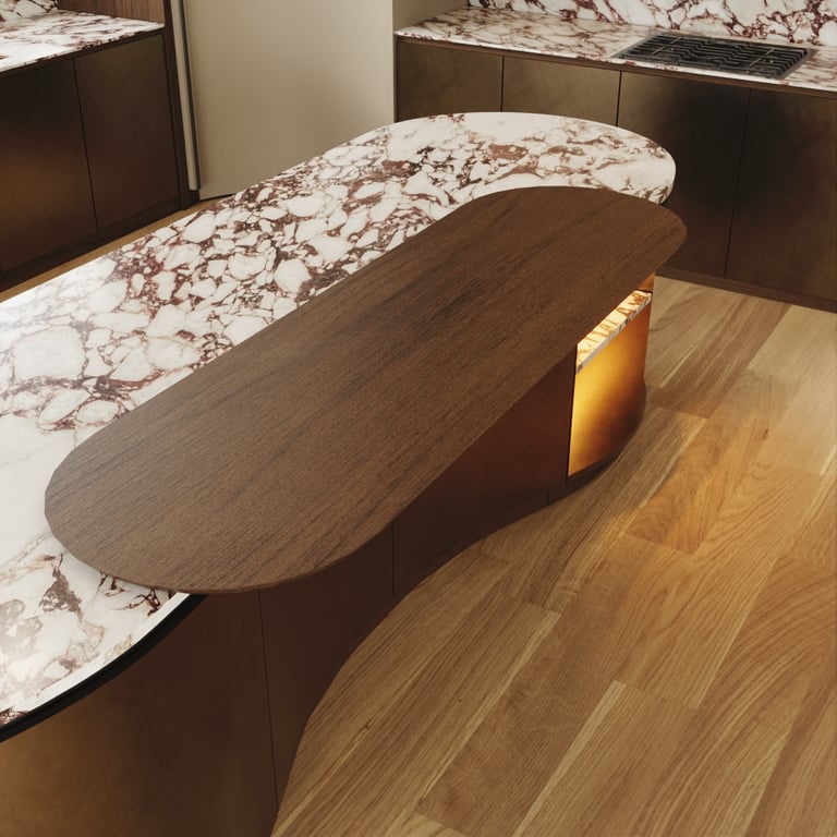 Organic Flow: Hand-crafted walnut curves that defy rigid lines.