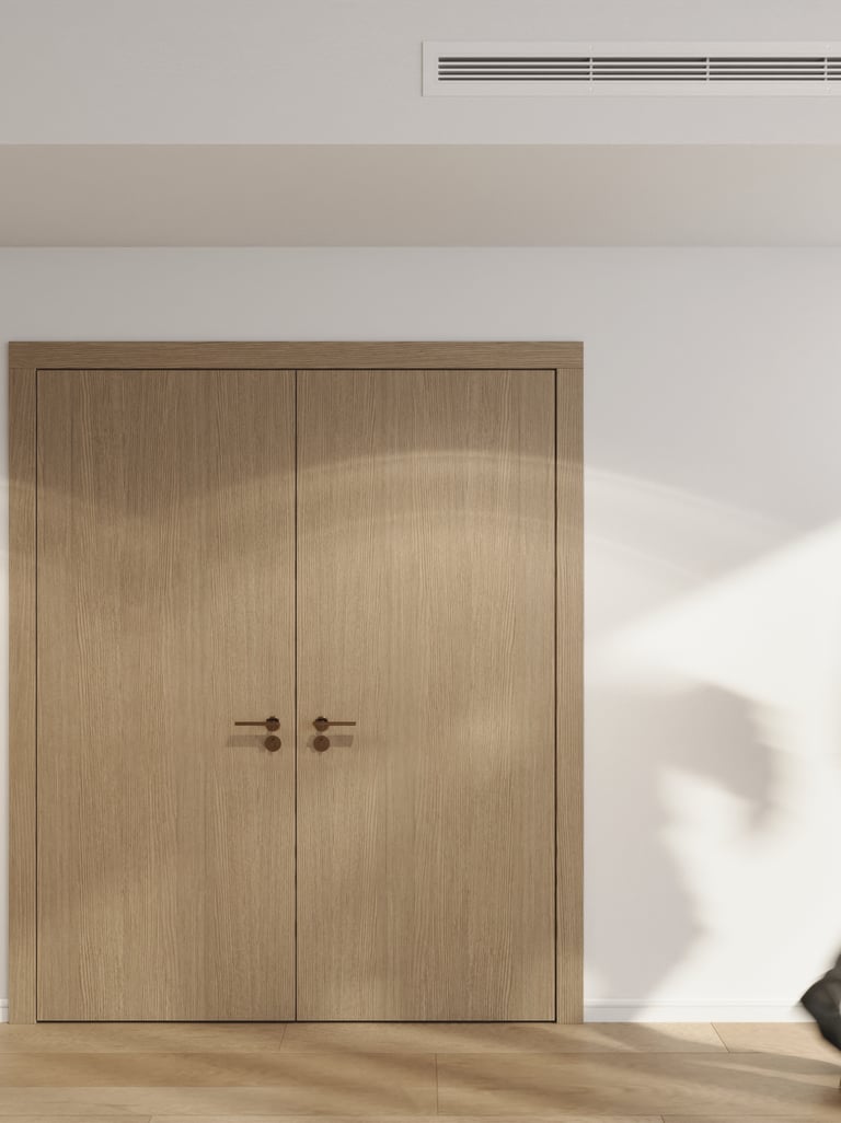 Interior doors are the rhythm of a home. Our bespoke collection focuses on the seamless transition between spaces, offering acoustic privacy and a tactile weight that speaks of true quality. More than a division, they are a statement of continuity.